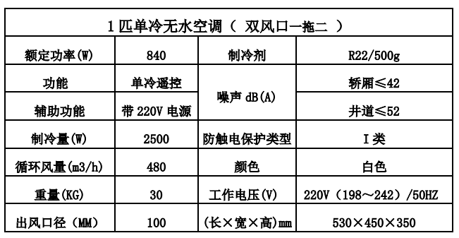 • 1 piece single cold air conditioner (double tuyere one tow two) white